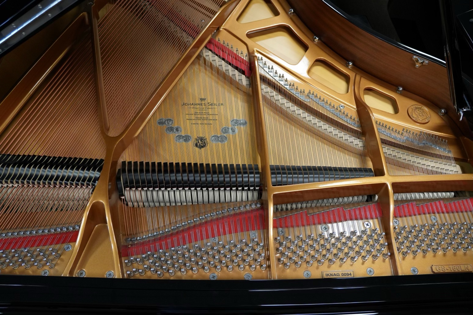 • Bechstein Scale Design: This Seiler Model 160 borrows a Bechstein scale design, an industry secret that enhances treble brilliance and overall tonal quality. For years, the Seiler company built some Bechstein pianos, and this partnership allowed Seiler to incorporate elements of Bechstein’s renowned design into their own pianos, resulting in a superior instrument that stands out in both sound and build.