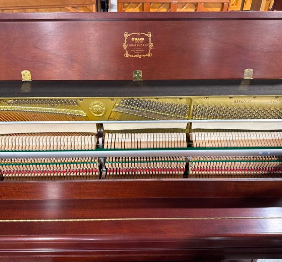 Experience the joy of music with the Yamaha M500 G Custom Mahogany Satin Upright Piano. Schedule a showroom visit today!
